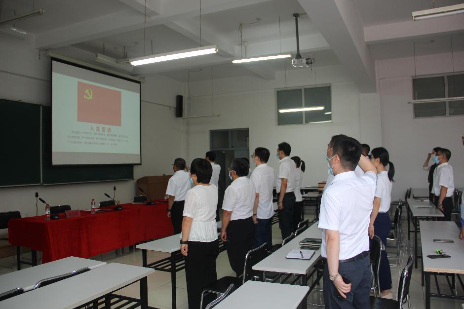 会前,举行了庄严的重温入党誓词仪式,全体与会共产党员面对党旗,在中心党总支书记谭平同志的领誓下,郑重宣誓。