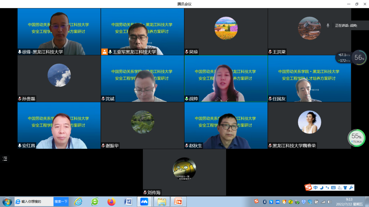 7月22日,调研组与中国劳动关系学院安全工程学院开展了线上研讨会,交流人才培养方案及教学改革经验。安全工程系主任谢振华介绍了安全工程专业的发展历程、专业特色、课程体系和专业建设主要措施,分享了在人才培养方案改革方面的经验和难点;应急技术与管理系主任安红昌,依托应急联盟,介绍了全国应急技术与管理专业人才培养现状,分享了本专业人才培养方案的制定过程、课程体系和对未来就业出口的思考;书记战帅介绍了劳育特色的学生第二课堂成绩单,将学生管理培养融入到专业培养中;院长赵秋生、副院长孙贵磊,分别从学院专业建设情况、人才培养特色、师资队伍建设等方面做了总结,并分享了办学经验。与会专家一致认为,要将国家战略需求、区域经济社会发展、学校办学定位和行业标准紧密结合,合理定位人才培养目标,要明确人才培养的行业特色、职业定位、素质能力需求,坚持专业特色,要在人才培养目标与毕业要求、毕业要求与课程体系的支撑关系上下功夫,深入实践“三全育人”“五育并举”,深化教育教学改革,努力形成高水平应用型人才培养体系。
